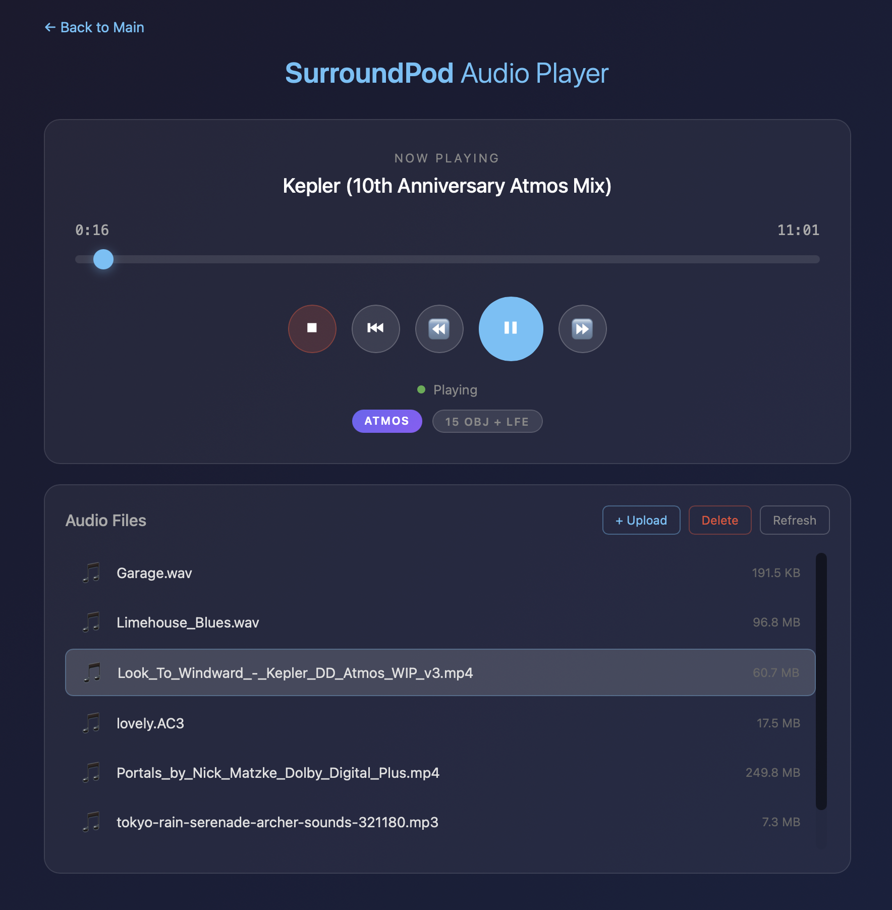 Upload your music files and play them through any processor or receiver with an HDMI input. Full bitstream passthrough ensures your AVR decodes the original format.